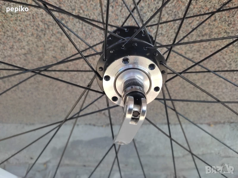 Комплект НОВИ алуминиеви двойно стенни усилени капли MASTER DISC 26 цола,алуминиеви двойностенни усилени шини на капси с 36 отвора изработени от алуминий 6005,размер на шината 559 х 18,алуминиеви главини с фабрични капсуловани лагери за дискови спирачки със 6 болта,с автомати за бърз монтаж и демонтаж,емайлирани черни спици,
