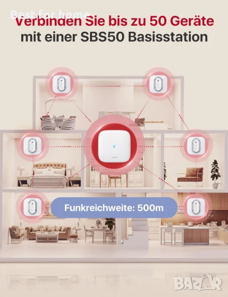 Висок безжичен обхват: благодарение на впечатляващия обхват от 500 метра на открито, можете лесно да чувате аларми в стопански постройки или стопански сгради; чрез приложение можете да наблюдавате целия си имот, независимо къде се намирате, а взаимосвързаните аларми ви позволяват пълна свобода при поставянето на детекторите за дим.