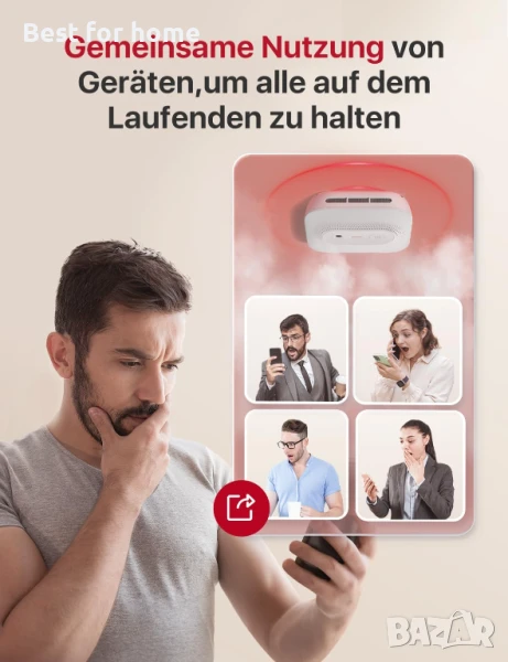 Удобно за всички: чрез приложението X-Sense Home Security, устройствата са достъпни за до 12 членове на семейството; позволява на потребителите да проверяват алармата, да получават аларми и да заглушават устройството, когато е необходимо.