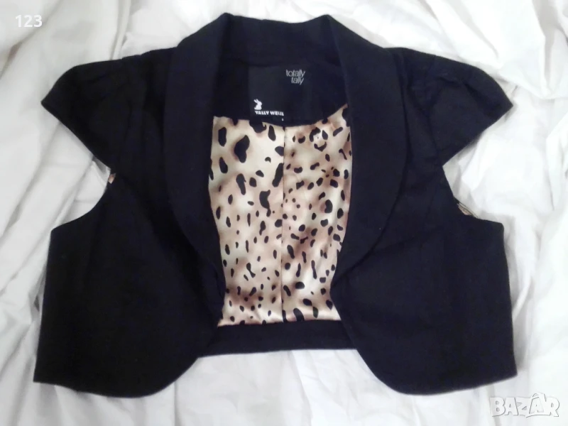 Горната част е черен сатен, в леопардова подплата. Има плохи
