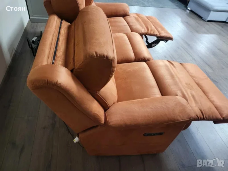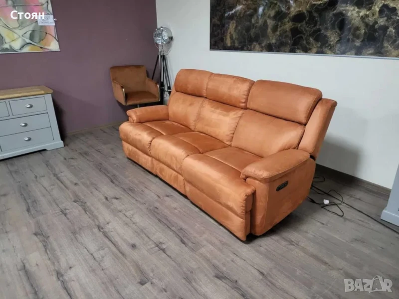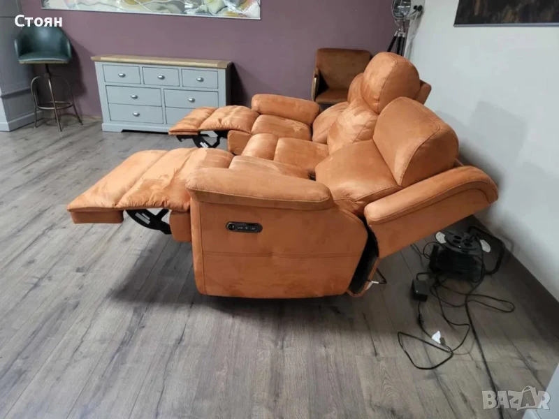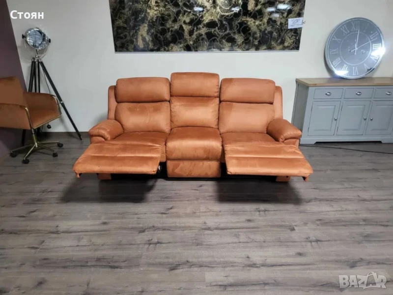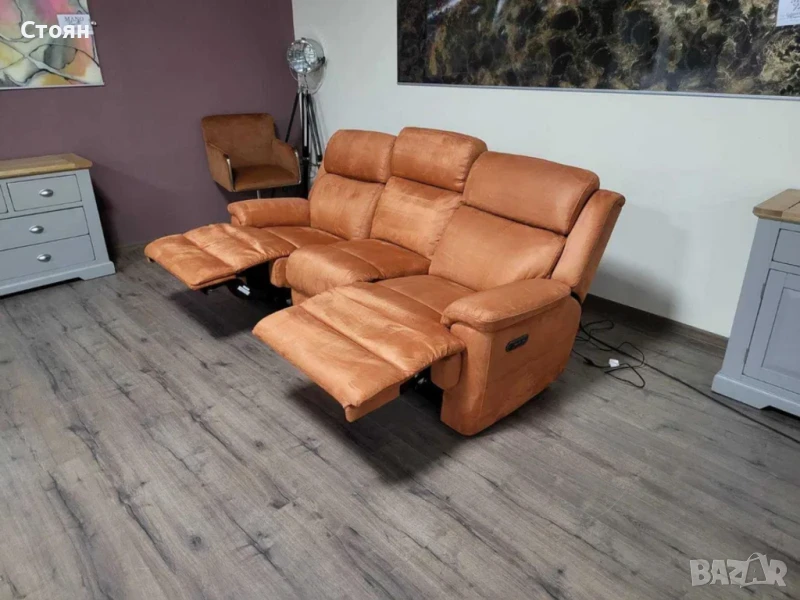 Оранжев диван от плат тройка "Gracie" с електрически релакс механизъм → Обява 50648474