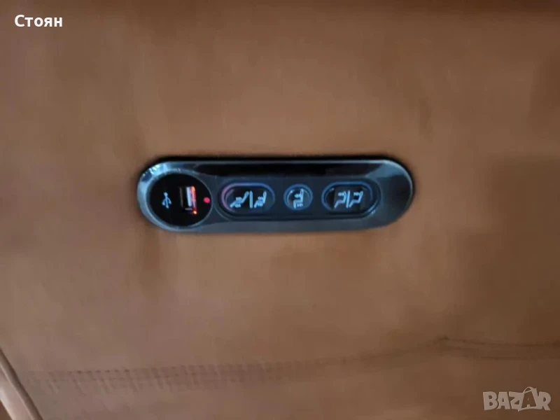 Оранжев диван от плат тройка "Gracie" с електрически релаксиращ механизъм за краката и облегалките в отлично състояние.