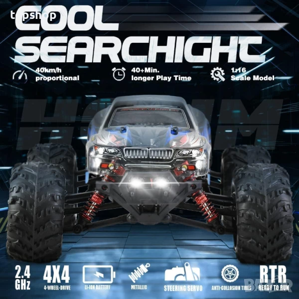 Hosim 1:16, 4WD кола с дистанционно 40+ км/ч с 2 батерии, радиоуправляем офроуд RC камион...
