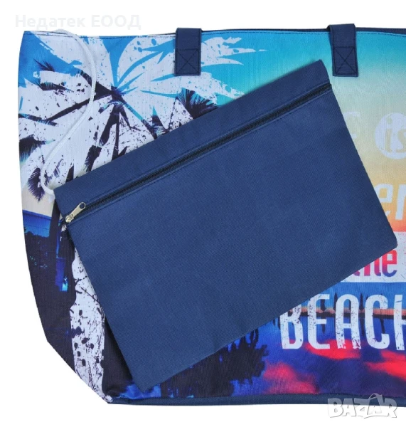 Плажна чанта с несесер, Син, 55x20x40см. → Обява 50650760