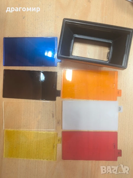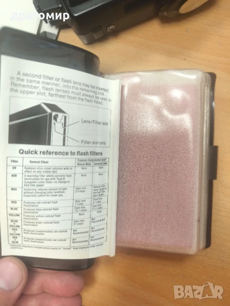 продавам светкавица, работи,с книжки за експлоатация, комплект филтри към нея,Vivitar auto thyristor 283 sensor, имам още много други фотоапарати, камери, обективи, чанти, светкавици, батерии, зарядни устройства, касети, филтри, ремъци, ленти, при закупуване на повече неща отстъпка