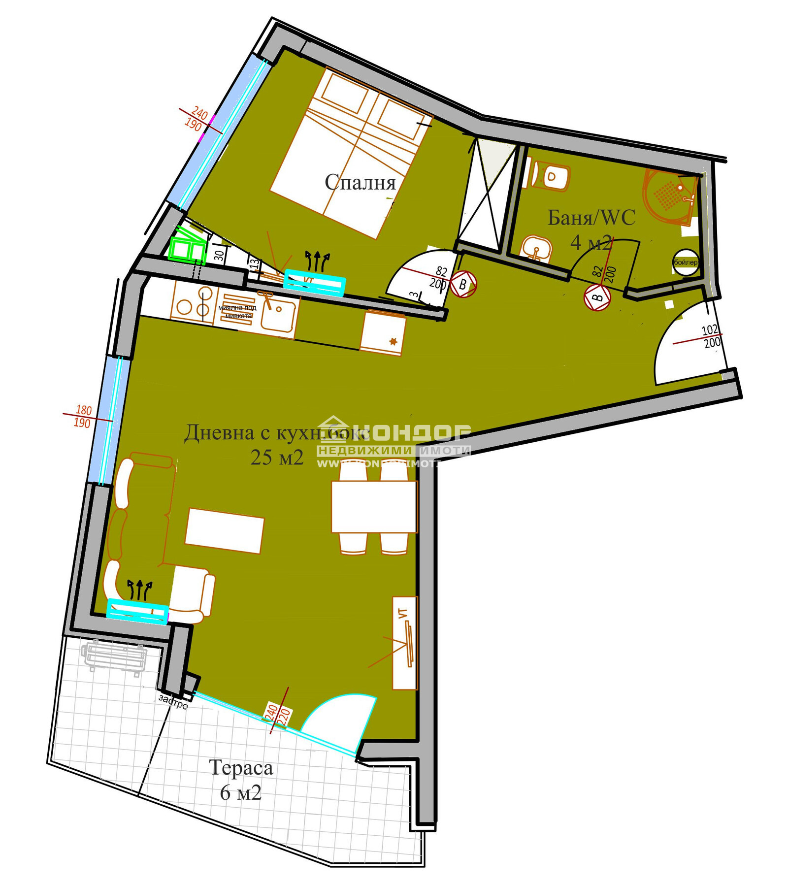 Оферта 65712: Представяме Ви новоизградена малка бутикова сграда - тип фамилна къща , състояща се от само четири апартамента в един от най- предпочитаните райони на централната градска част , а имено в подножието на Бунарджика. Апартамента се състои от голяма дневна 25кв, спалня, санитарен възел и тераса. Фирмата е заложила като изпълнение на материали от изключително висок клас, дограма Саламандър, троен пакет, френски прозорци, луксозна входна врата, автоматични гаражни врати, луксозни общи части с естествен материал: мрамор/гранит, цели стъпала фасада BAUMIT система STAR MB с минерална вата, материал на цокъла: естествен мрамор, покривна вентилируема система, Wienerberger керамични стени, ковано желязо, горещо поцинковано и прахово боядисано. Перфектната локация , съчетана с уникална гледка, малкия брой апартаменти, близостта до множество зелени площадки, детска градина, училище и удобен транспорт правят това предложение изключително атрактивен . Свободни Гаражи на Партерно ниво на цени от 35 000 и двойно Паркомясто на цена от 36000евро. Съдействие за Банково финансиране с изключително изгодни условия за клиенти на агенция.ВИЖТЕ ОЩЕ ИЗГОДНИ ОФЕРТИ НА https://www.kondorimoti.com/ С ЕЖЕДНЕВНА АКТУАЛИЗАЦИЯ!