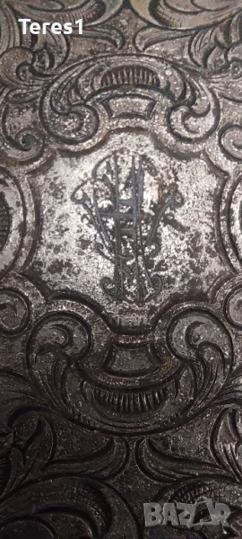 Много стара табакера в почти отлично състояние. Вероятно с сребърна баня като отвътре тя е запазена изцяло. Има красиви орнаменти от двете страни отвън а също така и монограм отпред в средата вероятно на притежателя.Пружинките за захващане на цигарите са си налични видно от снимките. копчето за отваряне работи безпроблемно.