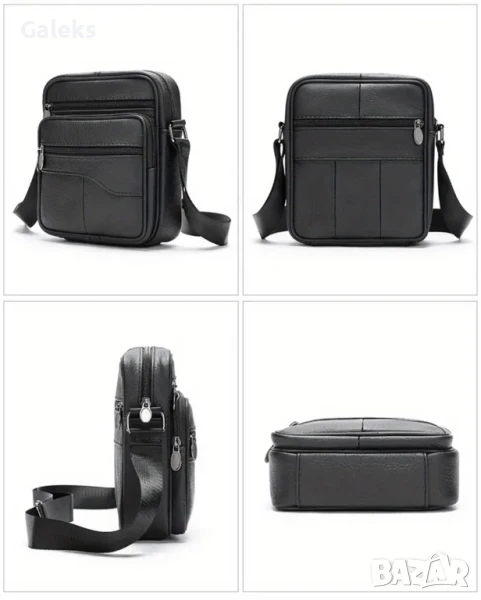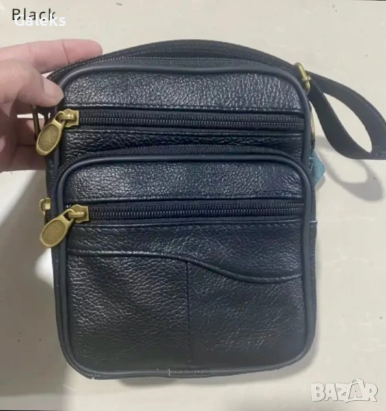 Мъжка функционално/ежедневна компактна чантичка от естествена кожа в черен цвят. Изработена с много отделения всяко с удобна достъпност и снабдено със здрави ципове в златисто.