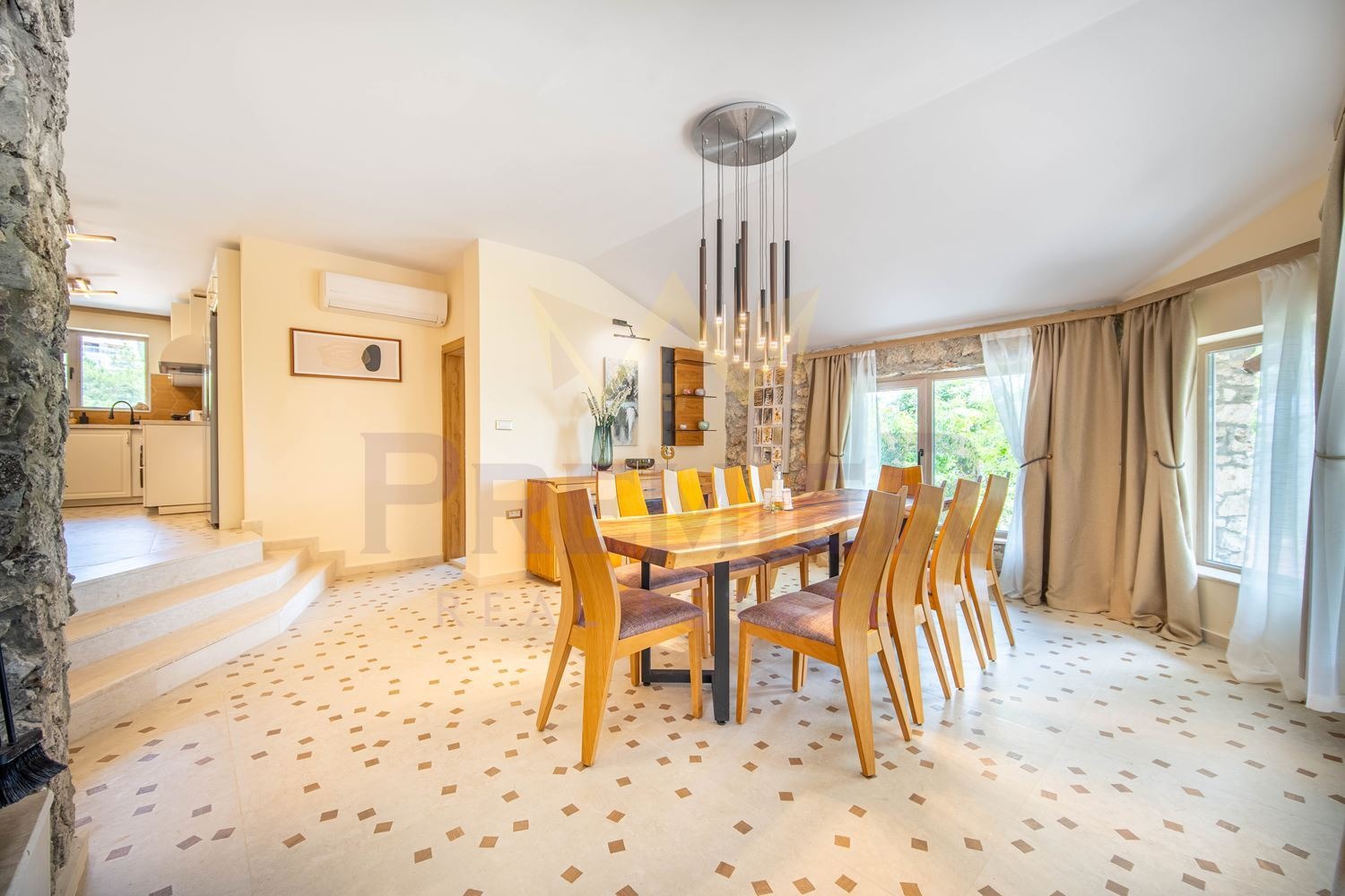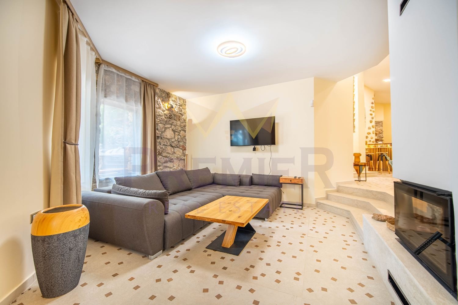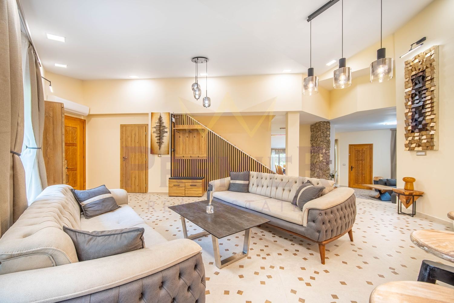 Просторна и светла дневна, проектирана на кътове с директен излаз към басейна и двора от където се открива страхотна панорама
