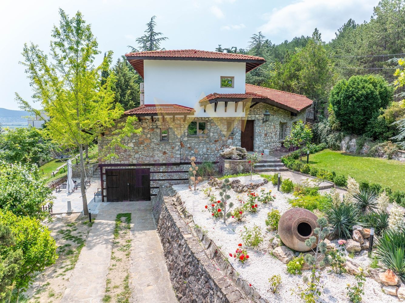 Теренът е оформен с внимание към всеки детайл истински парк с много кътове за отдих, сенчести зони и пътеки, които водят до различни части от имота: