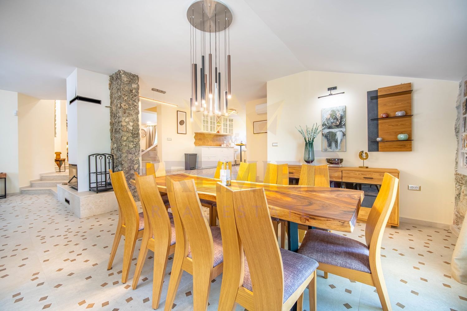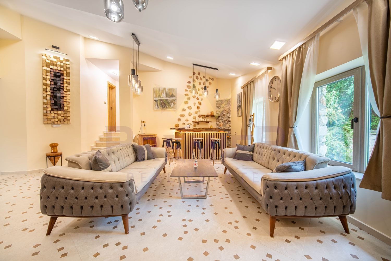 Просторна и светла дневна, проектирана на кътове с директен излаз към басейна и двора от където се открива страхотна панорама