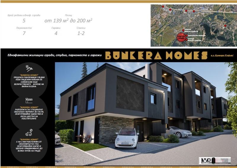 АРАДИС ИМОТИ предлага на Вашето внимание НОВО СТРОИТЕЛСТВО - изключителен жилищен проект от КЪЩИ от най-висок клас, разположен на живописно място с панорамни гледки към градския пейзаж на София, находящ се във в.з. Бункера , район Панчарево. Предлагаме Ви живот сред природата и атмосфера на хармония и спокойствие!
