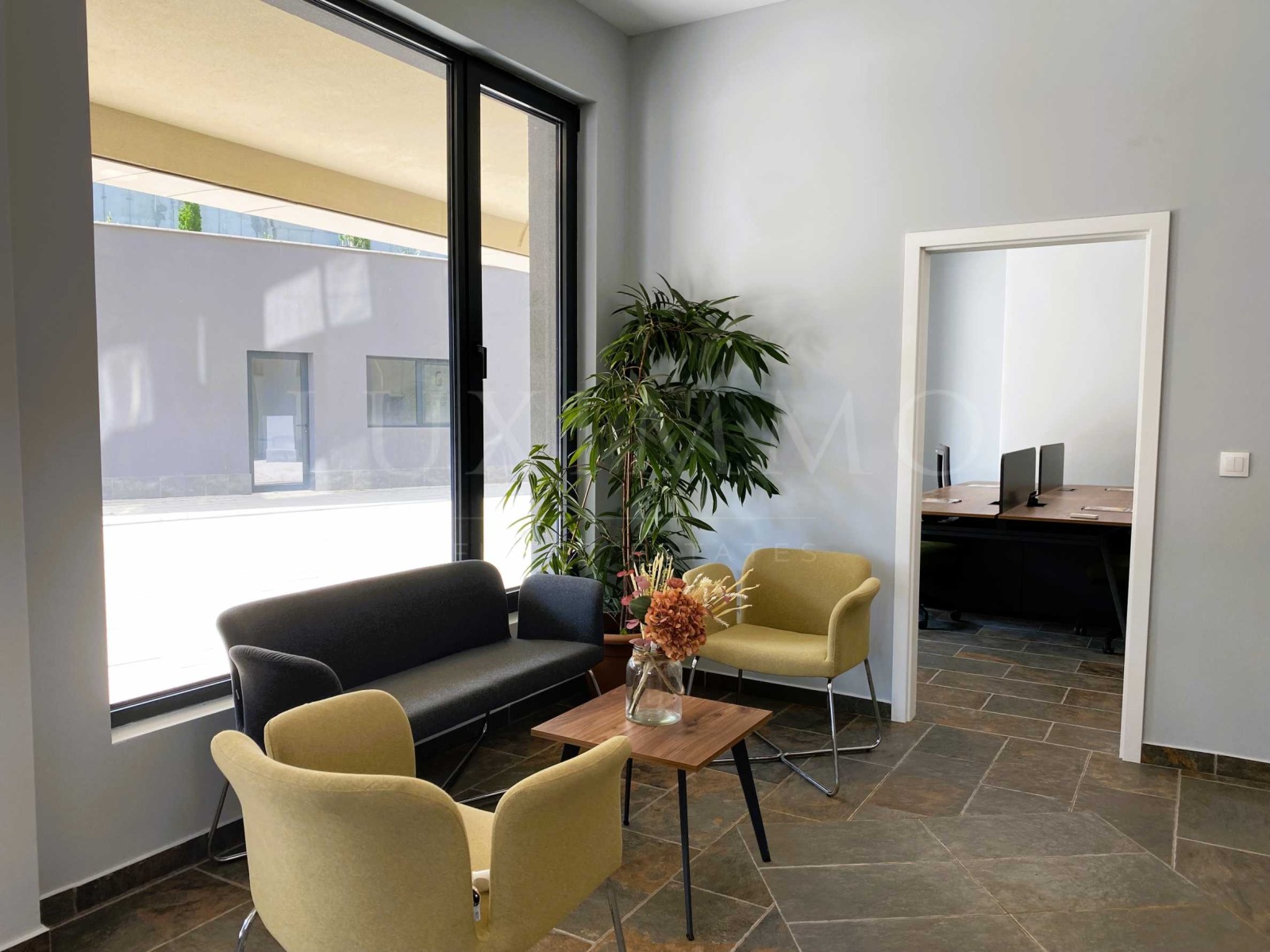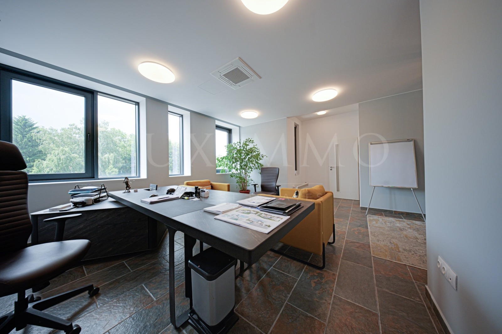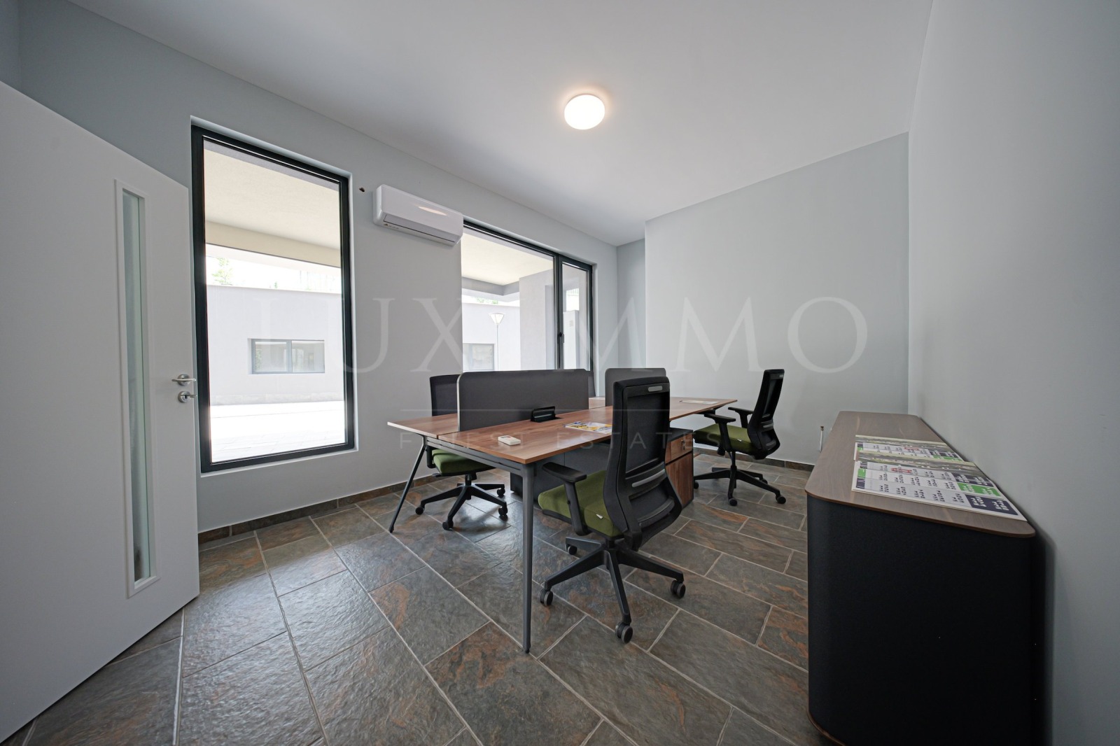 Влезте в напълно обзаведено и оборудвано офис пространство с висок клас офис мебели, подбрани с грижа към детайла. Комфорт, стил и функционалност се обединяват в едно, за да вдъхновят креативност и резултати. Изпълнен с естествена светлина и завършен с първокласни материали, този офис излъчва елегантност и професионализъм.