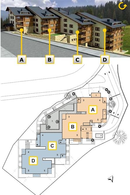 Общ брой апартаменти 73. Квадратура с включени идеални части - от 37 до 168 кв.м. Степен на завършеност - напълно завършени общи части и апартаменти 'до ключ' с настилки, вградени кухни, санитария; Инсталации - ел. отопление с електрически котлета и алуминиеви радиатори; в част от апартаментите са предвидени камини с водни ризи за алтернативно отопление и уют;
