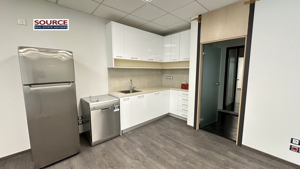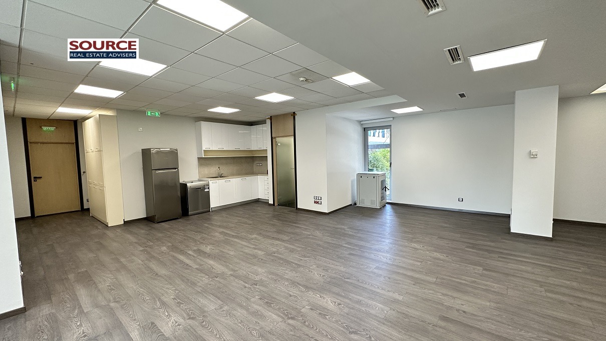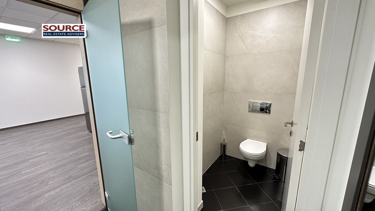 2. Разпределение: 1 голямо Open space помещение, оборудван кухненски бокс, wc. Офисът може да бъде допълнително преграден според изискванията на Наемателя.