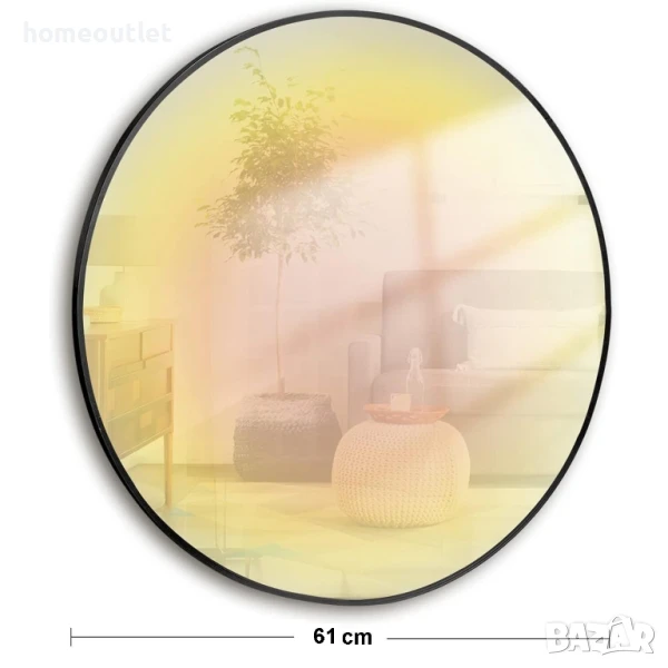 Голямото кръгло огледало с диаметър 50 см е смесица от нестандартен дизайн и елегантност и изглежда най-добре в модерни, съвременни стаи.