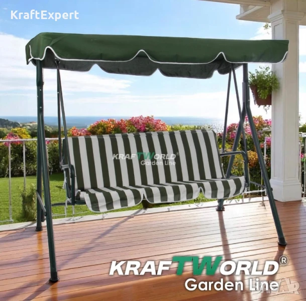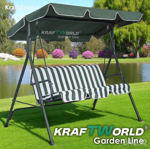Зелена Градинска Люлка KraftWorld Тоскана – Усилена конструкция и подарък мека възглавница!