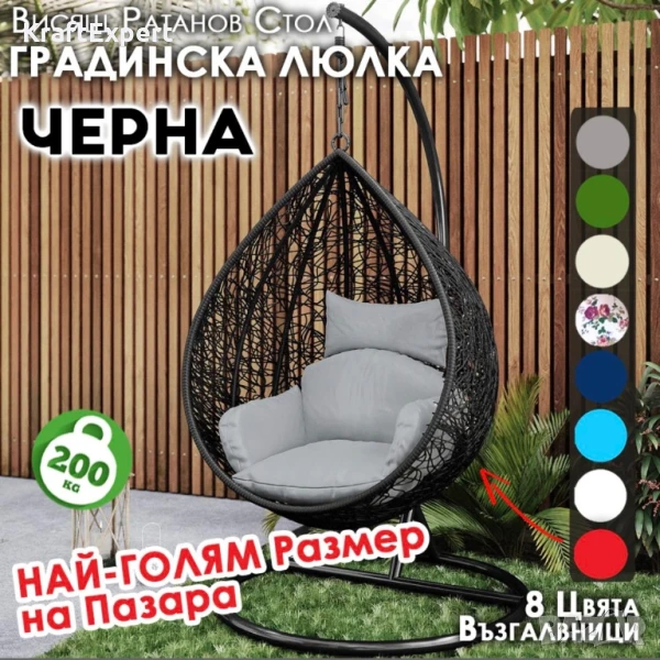 ратанови стола + висяща люлка✅ Устойчив PVC ратан и здрава метална конструкция✅ Голяма люлка с меки възглавници и стабилна стойка✅ Перфектен за градина, тераса, двор или веранда✅ Голям Избор от Цветове🌸 Подарете си пълен комфорт с луксозния градински комплект Teresa, допълнен с голяма висяща люлка тип гнездо! Създаден за ценителите на елегантния екстериор и истинския релакс, този комплект ще превърне всяко външно пространство в стилен и уютен оазис.Изработен от висококачествен PVC ратан, комплектът е устойчив на вода и UV лъчи, което го прави идеален за целогодишна употреба на открито. Солидната метална рамка осигурява стабилност, а закаленият стъклен плот (8 мм) придава елегантен завършек на масата, като в същото време е лесен за почистване.🪑 Комплектът Teresa включва 2 ергономични ратанови стола и кръгла маса със здрава конструкция, и удобен рафт.🛋 Висящата люлка тип гнездо е най-големият модел на пазара – с размер на седалката 110×125 см и подсилена метална стойка (Ø105 x 200 см), тя издържа до 200 кг и осигурява изключителен комфорт и стабилност. Обгърната от стилна PVC ратанова оплетка и допълнена с меки възглавници, люлката съчетава лукс, уют и устойчивост.🎨 Изберете своя стил! Люлката се предлага в цветове: Кафява, Сива, Черна, Бяла, с възглавници по избор – червени, сиви, бежови, зелени, бели на цветя и др.🌟 Предимства на комплекта:✅ Пълен сет за релакс на открито✅ Здрави и издръжливи материали – устойчиви на атмосферни условия✅ Елегантен и стилен дизайн, подходящ за всяко външно пространство✅ Разнообразие от цветове – както за люлката, така и за възглавниците✅ Без нужда от сглобяване за масата и столовете📦 Комплектът включва:2 x Ратанови стола Teresa1 x Кръгла ратанова маса със стъклен плот1 x Висяща ратанова люлка – голям модел с метална стойкаМеки възглавници за люлката (включени)Възглавници за столовете (Не са включени в цената)