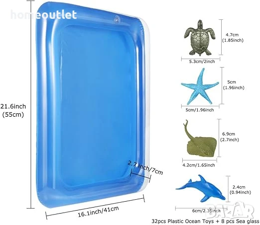 32 x фигурки на океански животни, 8 x морска трева, 1 x надуваема водна постелка.