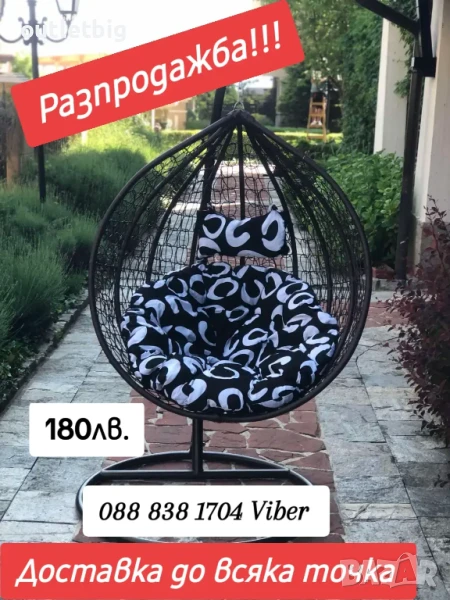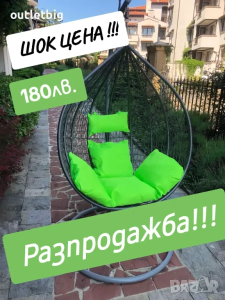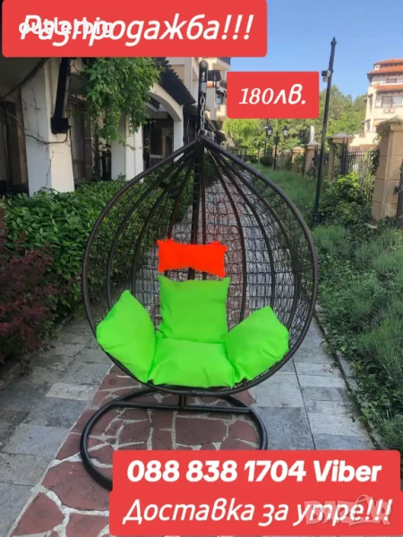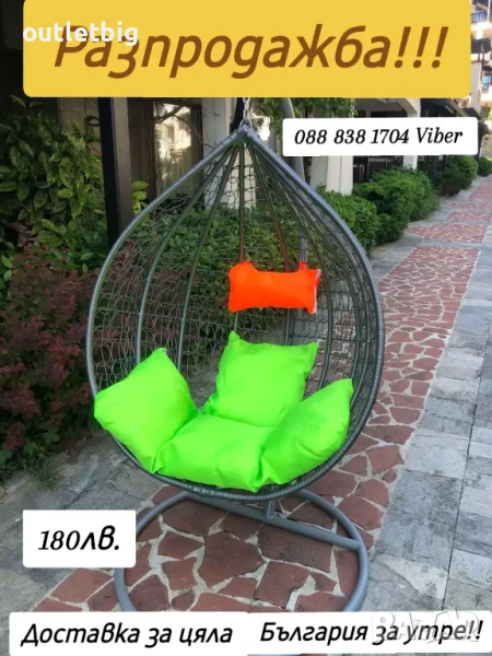 Градинска люлка с изключителна визия и практичност! Много удобна , сядайки в нея попадате в друг свят-на романтика и лукс! Предлагаме люлката в четири цвята-черен, сив и кафяв сив шагрен. Шест разцветки възглавници изключително подходящи за цвета на люлката и същевременно силно забележими, контрастиращи спрямо всякакъв околен пейзаж и допринасящи за изключителна визия !Люлките които предлагаме са с размери на основата 105 см и 122/126/70 на коша, като това са най-големите размери на този тип люлки! Допустимо натоварване-170 кг.Доставяме чрез Еконт за цялата страна на цена 36 лв от днес за утре! Цената на люлката в комплект с възглавници е 179.99лв лв с разгърнатите възглавници и 255 лв с огромна кръгла възглавница!