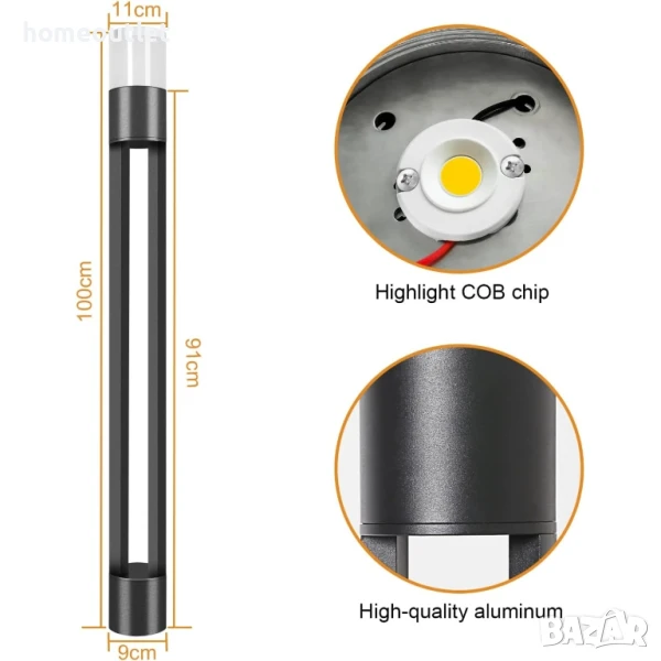Този стилен LED градински стълб е подходящ за външно осветление на алеи, градини, дворове, балкони и входове.