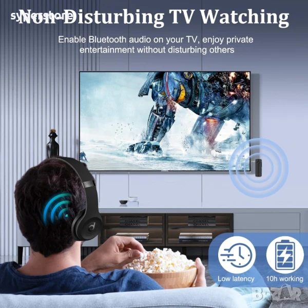 В режим предавател (TX) изпраща звука безжично към слушалки, колони и др.