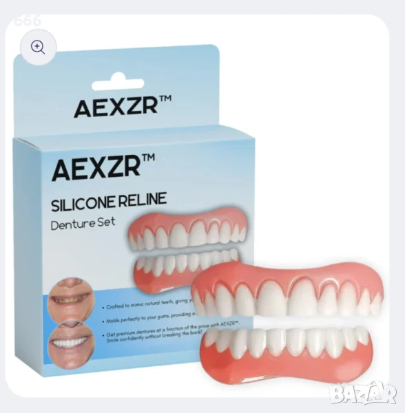 Съживете комфорта на протези си със силиконов комплект протези Reline. Изработен в нюанс, който имитира естествената белота на здравите зъби, като гарантира, че новата ви усмивка изглежда неподправена и сияйна