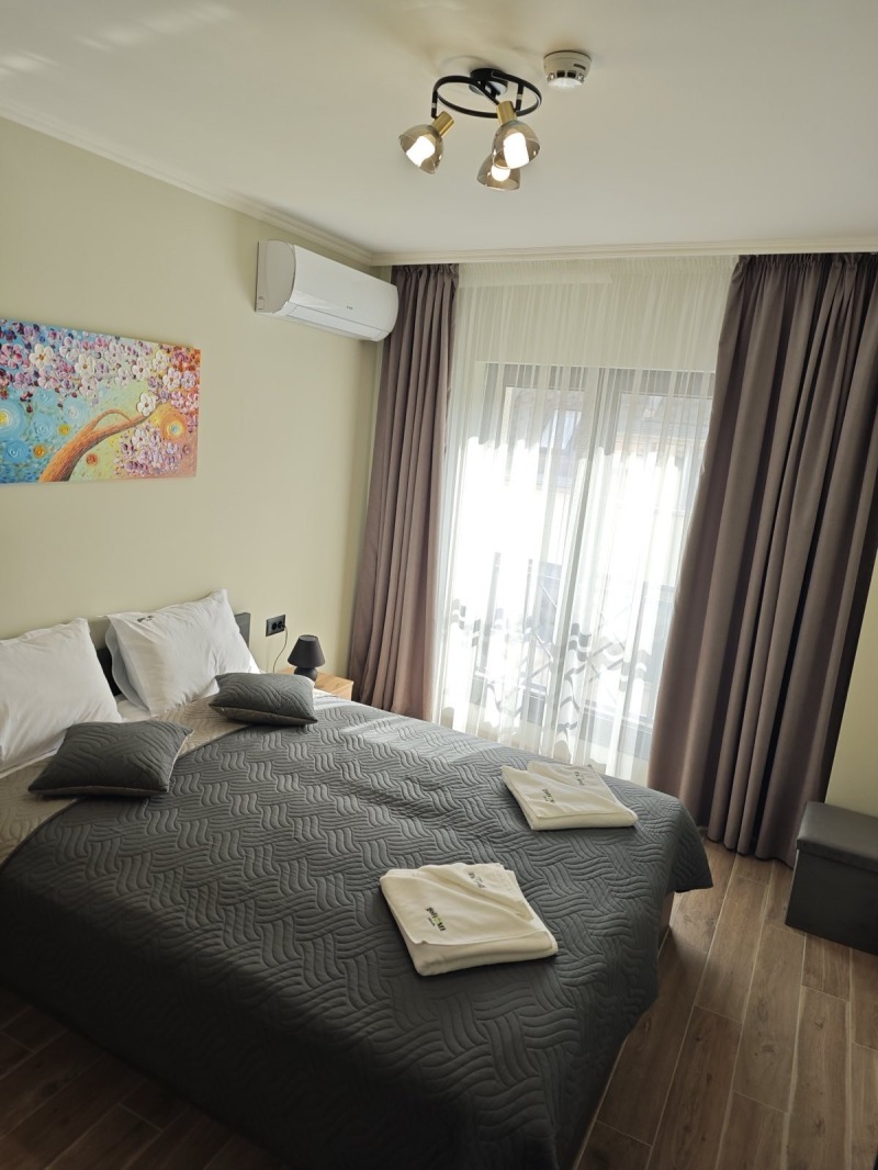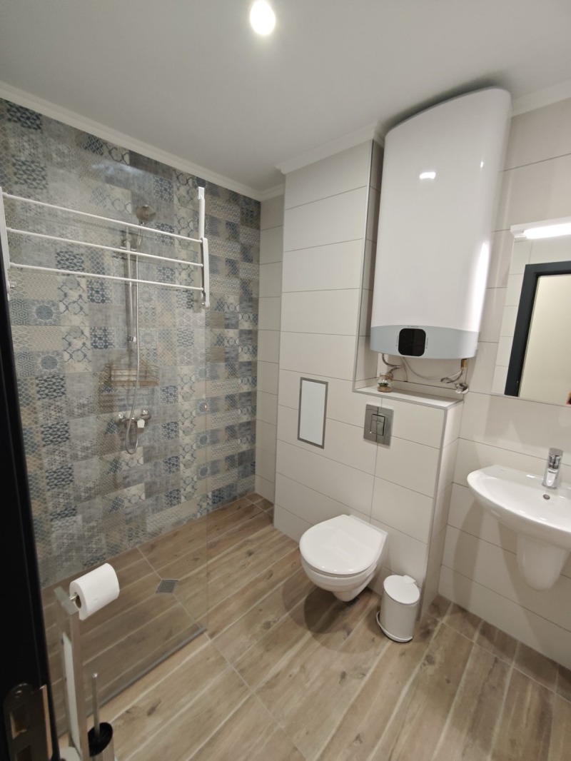 Просторен двустаен апартамент с обща площ от 68 кв.м кв.м. - локализиран кв. Кършияка, срещу Новотела - южно изложение с красива гледка. трети етаж от общо пет етажа в новопостроена сграда от 2024г. Жилището е просторно и светло - с изцяло южно изложение. Разпределение: всекидневна с кухня, голяма спалня с френски прозорци, входно антре, баня с тоалетна и тераса. Жилището се отдава напълно обзаведено с поръчкови мебели с изчистен дизайн и оборудвано с климатици и вградени електроуреди - фурна, котлони съдомиялна, пералня със сушилня, хладилник, TV и интернет. С възможност наемане паркомясто в подземен гараж