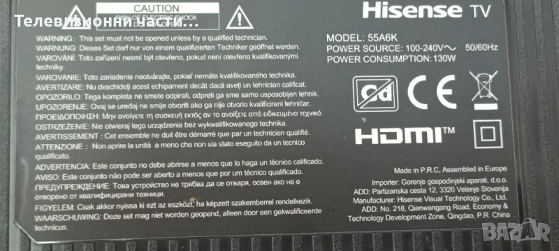 Hisense 55A6K със счупен еркан HD550H1U72-T0L1/RSAG7.820.12903/ROH/RSAG7.820.10545/ROH/JL.D550K1330