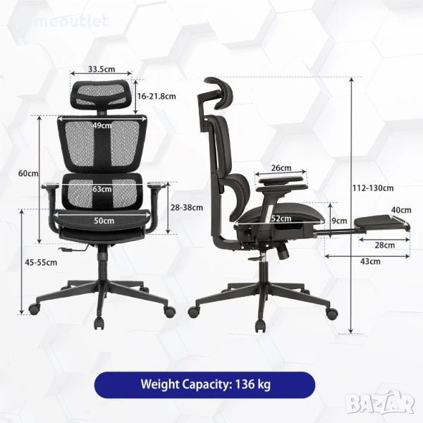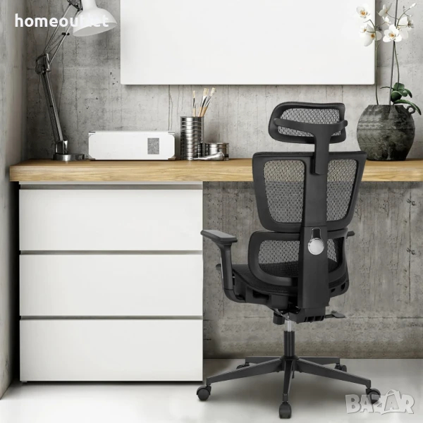 Висококачествената полиестерна мрежеста облегалка и облегалката за глава спомагат за по-добра циркулация на въздуха, поддържайки тялото ви хладно и удобно.