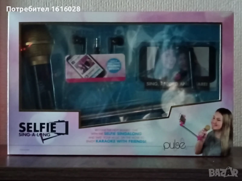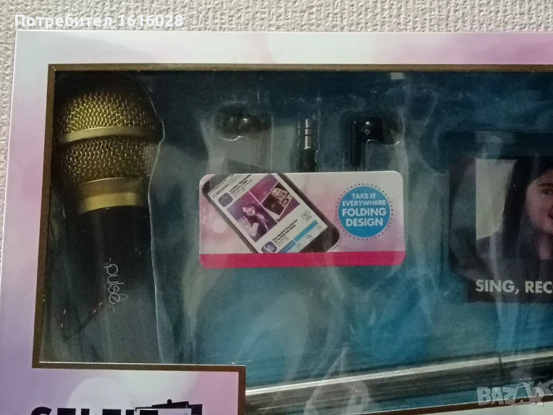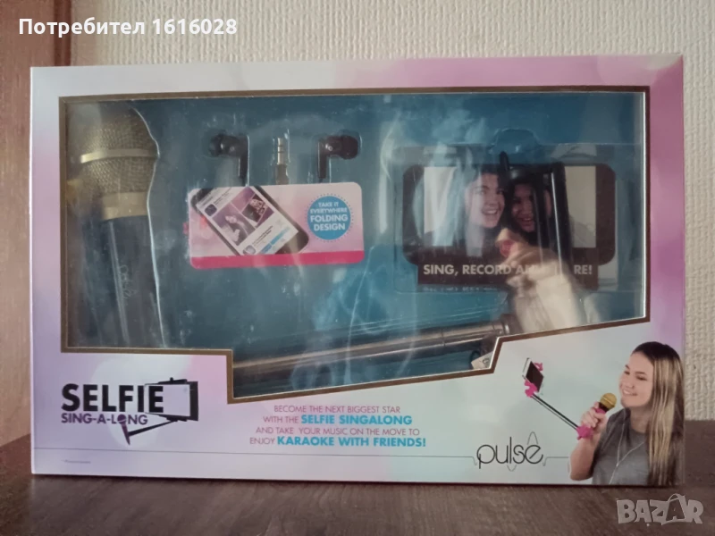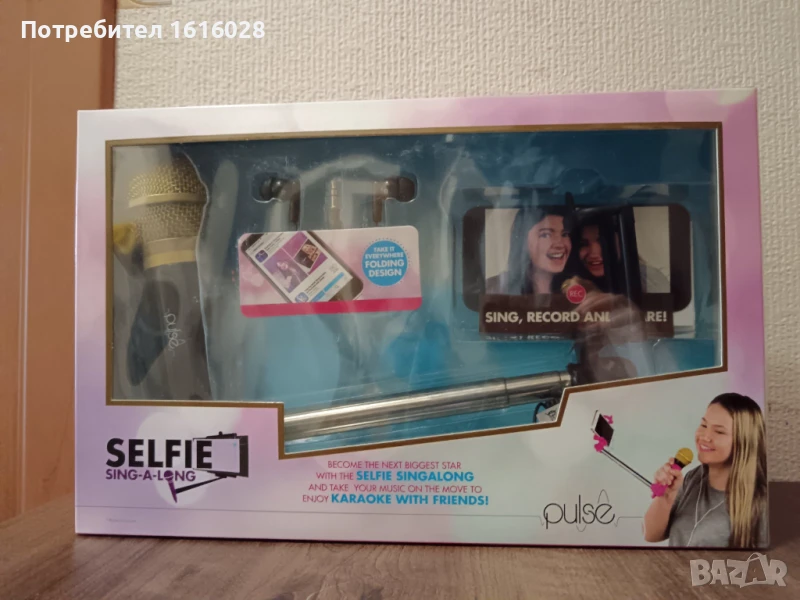 Селфи стик с микрофон и слушалки- вкл. приложение за заснемане на видеоклип.Нов, неразпечатвана кутия.