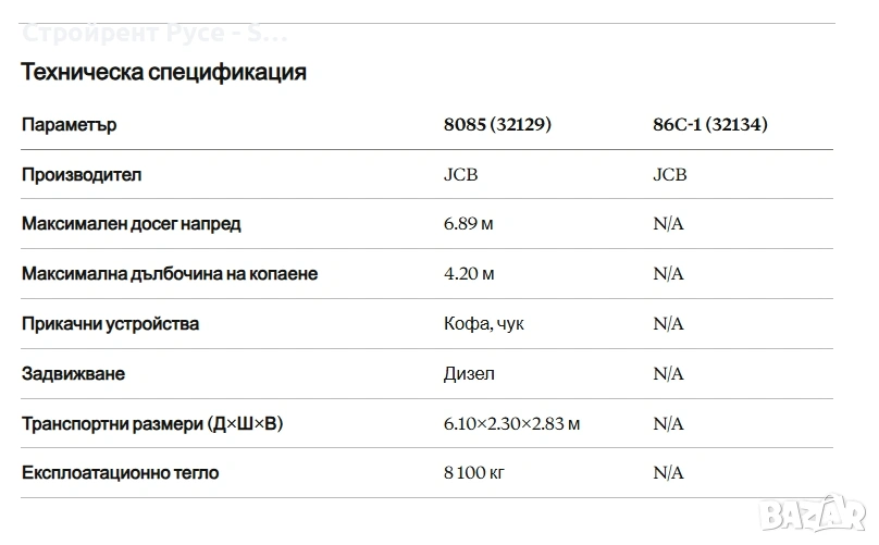 Мини багер JCB, Модели 8052, 8085, 5 тона, 8,5 тона, Под наем