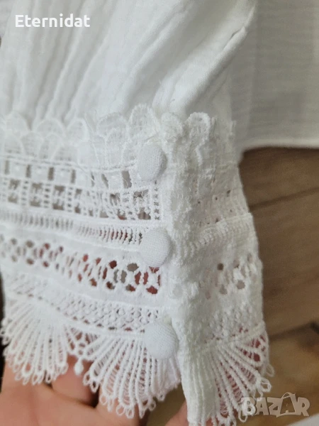 Бяла блуза памучна материя с дантела → Обява 50656207