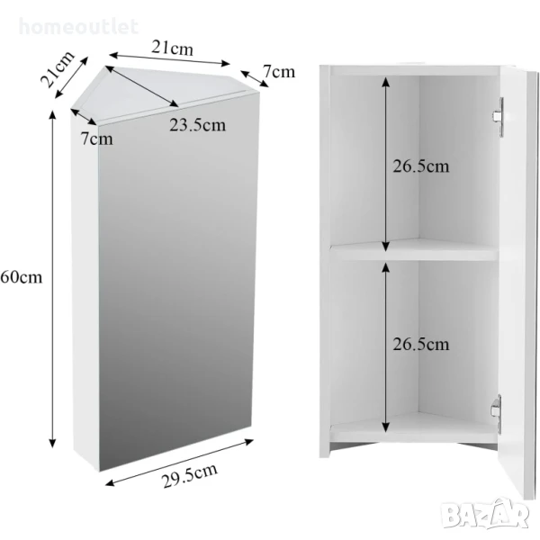 Този шкаф е снабден с висококачествено стъклено сребристо огледало, изображението е ясно и не е изкривено.