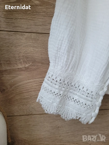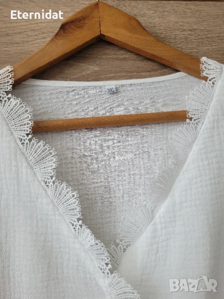 Бяла блуза памучна материя с дантела → Обява 50656379
