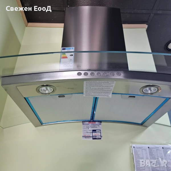 Дизайнерски абсорбатор с рециркулация, стенен монтаж, 90 см, хромирано покритие против пръстови отпечатъци