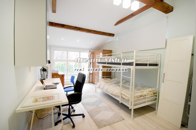 ДРИЙМ ВИЖЪН НЕДВИЖИМИ ИМОТИ продава качествено завършена еднофамилна къща на тихо и спокойно място в близост до магазин ИКЕА, РИНГ МОЛ и Бизнес Парк София. Състои се от два етажа, на които са разположени просторна дневна с трапезария и кухненски бокс с френски врати с излаз към двора; две тераси, четири спални, ателие със сауна към него, три бани с тоалетни, отделна тоалетна, мокро помещение/лятна кухня, сервизно помещение. Отопление на конвектори и чрез камина, която създава усещането за уют в зимните дни. Къщата е с 20 см изолация, с шест камерна троен стъкло пакет дървена дограма, което допринася за енергийната ефективност на имота. Просторен, добре озеленен двор. В близост има и спирка на градският транспорт. Покрити паркоместа за два автомобила. Собствена био-канализационна система за отпадъчни води на Biorock, изграден високо ефективен дренаж около цялата къща, предпазващ от планински води. Оферта в агенцията 10924. Всички наши обяви ги работим с колеги. Още наши оферти може да намерите на www.dreamvision.bg Телефони за връзка: 02/421 96 35 ; 0886 13 22 91 Димитър Георгиев