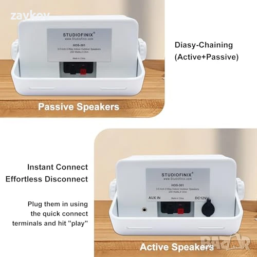 3,5 мм AUX IN ЖАК Външните кабелни високоговорители имат вграден 3,5 мм AUX входен жак, така че можете да свържете допълнителни външни устройства към вашата система от високоговорители, като мобилен телефон, компютър, домашно кино, телевизор, CD плейър, осигурявайки плавно аудио изживяване на множество устройства