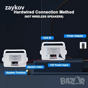 【Усъвършенствана кабелна Bluetooth 5.3 технология】Bluetooth връзката може да бъде смущавана на открито, но нашите кабелни стенни високоговорители за външна употреба обикновено използват по-новите Bluetooth версии, за да осигурят по-стабилни връзки и по-добро предаване на звука. А обхватът на безжичната връзка е до 9 метра.