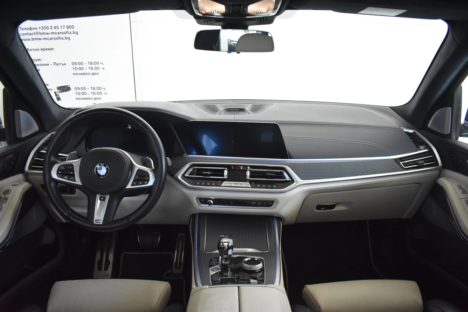 номер на офертата: 200209 Цвят: Dravit Grey metallic тапицерия: Изцяло кожен салон BMW Individual Merino Ivory White/Night Blue I Black Комуникация Head up дисплей (Прожектиране на данни на предното стъкло) Мултимедийна система за задните места Professional Озвучителна система Bowers and Wilkins System Diamond Surround Sound DAB тунер Ключ BMW Display Key TV функция Plus Разширена телефония с възможности за свързване на смартфон Управление с жестове BMW Gesture control BMW Спешно повикване ConnectedDrive Услуги Телеуслуги Версия и пакети Вътрешни декоративни елементи от фино дърво черно BMW Individual Fineline Кожена облицовка на таблото BMW Individual Innovation Package Service Inclusive - 5 години / 100 000 км Външни декоративни елементи BMW Individual Shadow Line, гланц М Аеродинамичен пакет Пакет Advanced Heating Пакет Ambient Air Пакет Connected Professional Пакет First Class Upgrade Пакет багажно отделение Система за контрол на окачването Executive Drive Pro Екстериорно оборудване Панорамен люк покрив Sky Lounge 22" М алуминиеви джанти V-spoke 755 M Bicolour Cerium Grey Runflat разл. раз M Спортни спирачки Електрически прибиращ се теглич Механични сенници за задните странични стъкла Слънцезащитни стъкла М Спортна изпускателна система Релси багажник, гланц Satin Chrome, BM W Individual Гуми със система за авариен режим Интериорно оборудване Активно проветряване на предните седалки Електрически предни седалки тип Comfort Масажна функция за шофьора и пътника до него Отопление на предни и задни седалки M кожен волан Soft Close - автоматика на вратите Автоматична 5-зонова климатична инсталация Програмируемо отопление с дистанционно Система за комфортен достъп Вътрешно осветление Пакет Heat Comfort, отпред Таван антрацит Alcantara BMW Individual te Интериорни елементи с кристално покритие " CraftedClarity" Поставка за чаши с регулируема температура Секретни болтове Велурени стелки Светлини и видимост BMW Лазерни Светлини Асистент за дълги светлини LED-фарове за мъгла Сигурност Асистент за паркиране Plus Active Guard Plus Активна защита Асистент за шофиране Professional Алармена система Интегрално активно управление Активна защита на пешеходци Контрол на налягането в гумите Други M Спортен Диференциал Спортна автоматична скоростна кутия