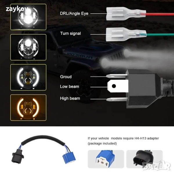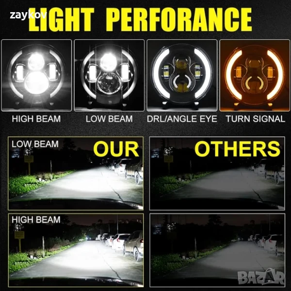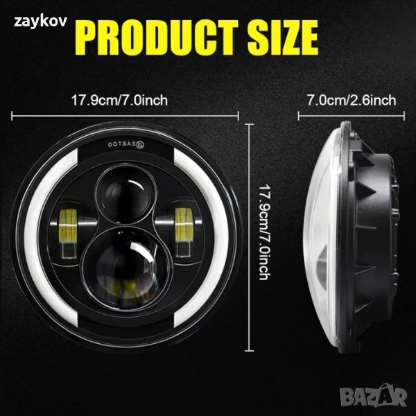 Kairiyard 7-инчови кръгли LED фарове 100W 10000LM 4 лещи Angel Eyes 3000K + 6000K 4 режима