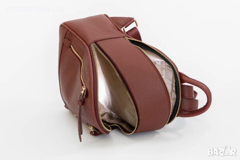 AMORE Martina е перфектната дамска раница за жените, които търсят баланс между елегантност и практичност. Със своя изчистен дизайн и стилен бордо цвят, тя се вписва лесно във всяка визия – от ежедневния аутфит до по-елегантни комбинации. Компактна, но просторна, тя побира всичко необходимо за динамичния ти ден, без да прави компромис с удобството.