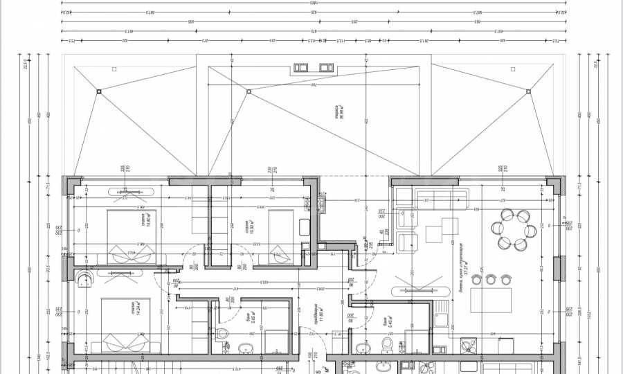 Апартаментът е четиристаен, с обща площ 197,55 кв.м и е разположен на шести последен етаж.