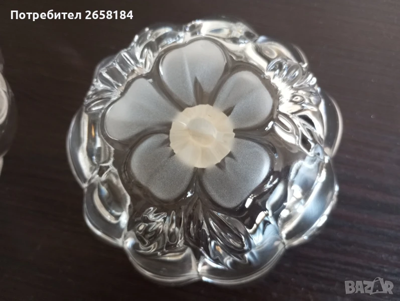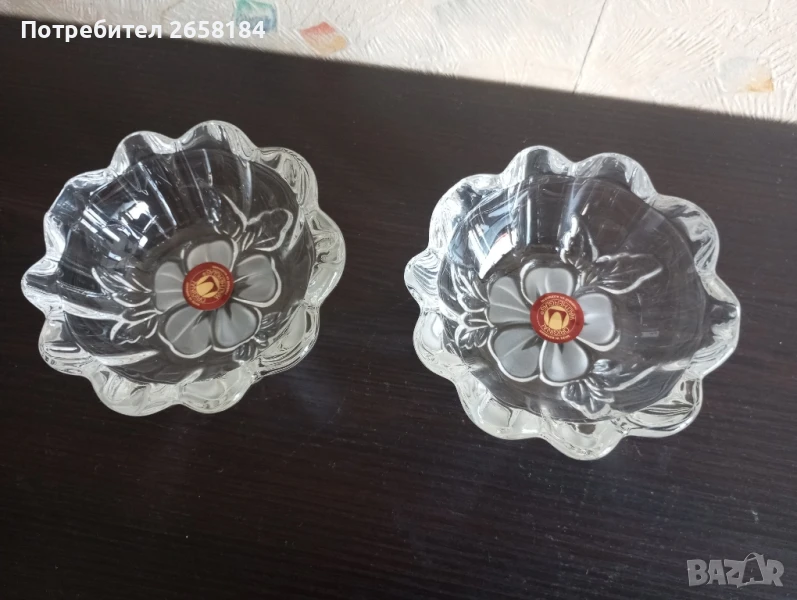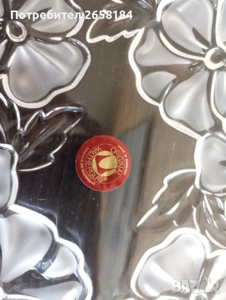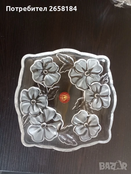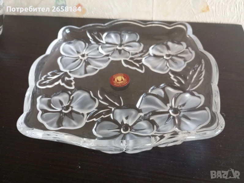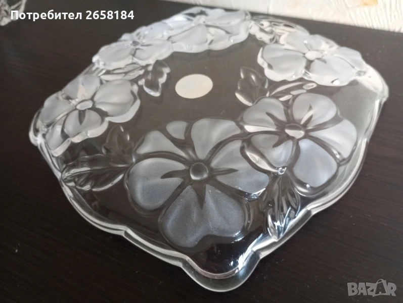 к-т 3 части от Waltherglas. Нов. Чиния 17.5см. вис.3см, купички диам.11см, вис.4.5см. Цветята не са боядисани, а стъклото е сатинирано. За София безплатна доставка до адрес.