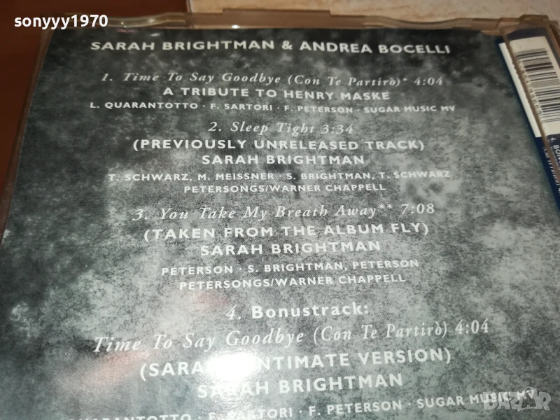 SARAH BRIGHTMAN & ANDREA BOCELLI CD 1306251852 → Обява 50658057