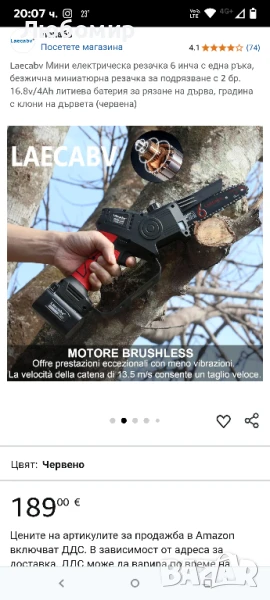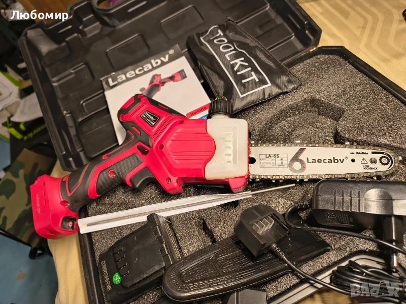 Мострена Laecabv Мини електрическа резачка 6 инча с една ръка, безжична миниатюрна резачка за подрязване с 2 бр. 16.8v/4Ah литиева батерия за рязане на дърва, градина с клони на дървета (червена)Режимът на изходен ток на електрическия трион определя, че трионът има по-високи изисквания към батерията. Нашият безжичен трион е оборудван с две висококачествени 4Ah батерии и бързо зарядно устройство, което може да зарежда две батерии едновременно. Двете батерии могат да работят 120 минути (в зависимост от вида дървесина и размера на рязането).