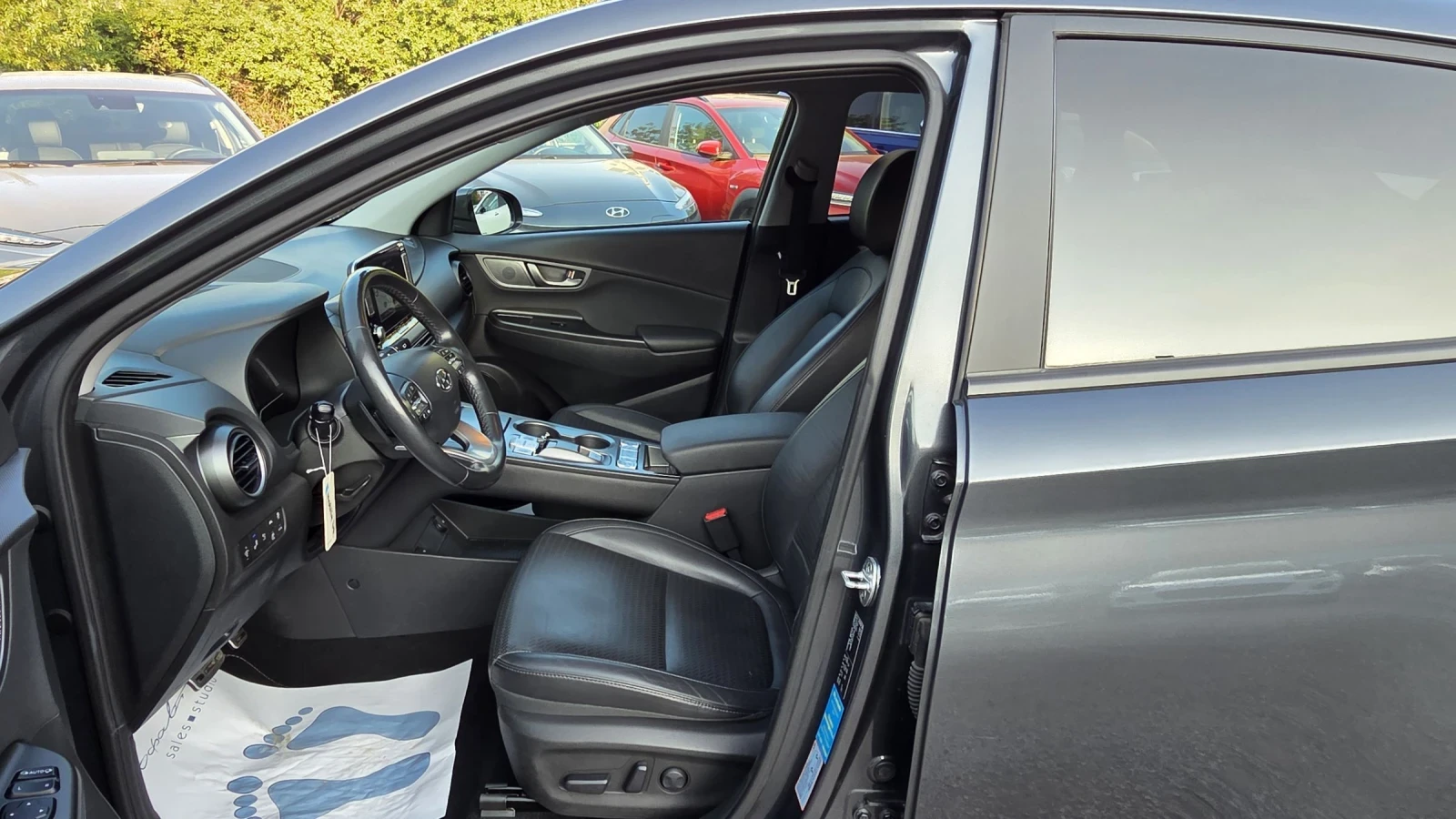 AУТО ГЕРМАНИЯ Ви предлага Hyundai KONA Electric. Най-високо ниво на оборудване PREMIUM. РЕГИСТРИРАН С ПЛАТЕНО КАСКО КАРА СЕ ЕЖЕДНЕВНО. Гаранция на батерията 2027г. Сертификат за живота на батерията/state of health/ SOH100%. Oборудване: Пакет помощ при шофиране: електрически външни огледала. сгъваема, система за подпомагане при шофиране: асистент за мъртва зона, помощ за паркиране отзад, Head-up дисплей, система за помощ при шофиране: помощ при паркиране отпред и отзад, система за подпомагане на шофирането: асистент за напречен трафик отзад (Cross Traffic) Навигационен пакет: навигационна система, 8 високоговорителя, субуфер, интерфейс за смартфон (Apple CarPlay & Android Auto), звукова система KRELL, цветен сензорен дисплей (10, 25 инча) Пакет седалки: Отопление на седалките, тапицерия на седалките: кожа, комфортни седалки отпред, включително вентилация Система за подпомагане на шофирането: Функция за автономно аварийно спиране, включително предупреждение за челен сблъсък (FCA): Система за подпомагане на шофирането: Функция за автономно аварийно спиране, включително разпознаване на пешеходци (FCA-Ped. ), Система за подпомагане на шофирането: Функция за автономно аварийно спиране, включително разпознаване на велосипедисти (FCA-Cyc. ) Специално оборудване (MIC) Слюдена боя / боя с минерален ефект Стандартно оборудване Светлина в завой Страничната въздушна възглавница за пътника може да бъде изключена Странична въздушна възглавница за пътника Въздушна възглавница от страната на водача Алармена система Антиблокираща спирачна система (ABS) Тип задвижване: задвижване на предните колела Електрически външни огледала регулируеми и отопляеми, и двете Боядисани външни огледала СПИРАЧЕН АСИСТЕНТ Светлинен индикатор, интегриран във външното огледало Релси на покрива Автоматично включване на светлините/сензор за светлина Електрическо разпределение на спирачното усилие Електрически двигател 150 kW Електрон. Контрол на стабилността (ESC) със спирачен асистент Система за подпомагане на шофирането: Attention Assistant Система за подпомагане на шофирането: Асистент за потегляне по наклон Система за подпомагане на шофирането: Асистент за дълги светлини Система за подпомагане на шофирането: Система за сигурност с автоматично спешно повикване (ERA GLONASS / eCall) Система за подпомагане на шофирането: асистент за задръстване Система за подпомагане на шофирането: асистент за пътни знаци Система за подпомагане на шофирането: активен асистент за поддържане на лентата (LKAS, Lane Keep Assist System) Информационна система за водача (7, 0 инчов дисплей) Електрически задни стъкла Електрически стъкла отпред Bluetooth система за свободни ръце Предно стъкло с лентов филтър отгоре Топлоизолиращо предно стъкло Подкрепа за контракормилно управление (Управление на стабилността на превозното средство, VSM) Осветление на багажното/товарното пространство Покривало на багажното отделение / ролетна щора Система за круиз контрол (темпомат) с дистанционен контрол ACC Предна поставка за чаша Задни светлини LED Задно стъкло с възможност за отопление ISOFIX стойки за детски седалки Индукционна зарядна станция за смартфон Вътрешно огледало с автоматично затъмняване Климатроник Система за въздушни възглавници за главата Регулируеми задни облегалки за глава LM джанти Седалка с лумбална опора предна лява, електрическа. регулируема Волан (кожен) с мултифункц Подгрява