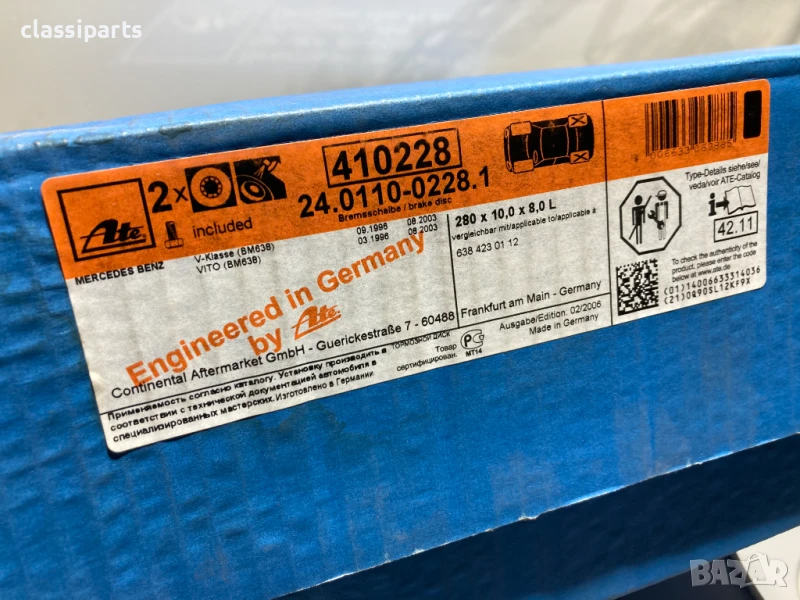 Спирачни дискове ATE за Мерцедес Вито и V Класа / MERCEDES-BENZ Vito, V-Class
