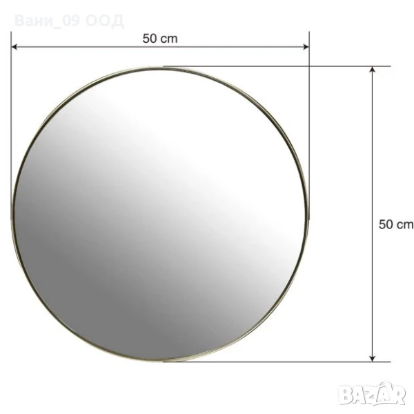 50см Кръгло стенно огледало със златиста рамка → Обява 50660161