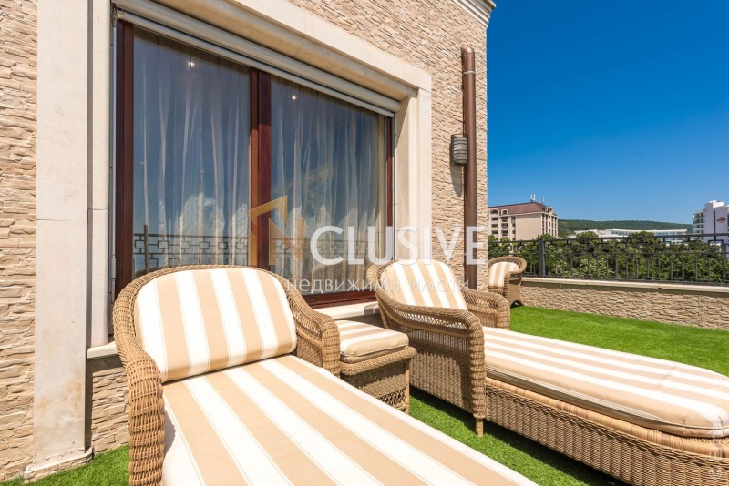 Жилището се намира на 7-и, непоследен етаж и от него се разкрива приказна морска панорама до към атрактивните плажове на Златни пясъци, чак до нос Калиакра. Апартаментът е обзаведен по поръчка от известна дизайнерска фирма. Използвани са елегантни, уютни и иновативни решения, в съчетание с красотата и богатството на класическия дизайн.